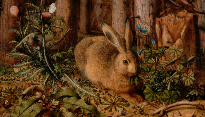 A Hare in the Forest (detail), about 1585, Hans Hoffmann. Oil on panel. The J. Paul Getty Museum