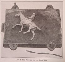 Note: Metal is often used rather than plaster because it can better withstand the wear caused by repeated sand molding. To aid in mold making, the chef-modèle is often in sections to allow their removal from the sand mold without damaging the sections. The edition proofs (épreuves d’édition) produced with a chef-modèle are a kind of .
