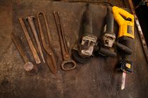 Steps carried out directly after casting to remove unwanted features, including oxidized metal, , , , etc. Fettling may entail the use of power tools and/or hand tools such as saws, chisels, hammers, coarse files, and abrasives.