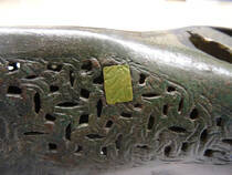 A type of repair most often mechanically set into the surface, but which may also be soldered, welded, or into place (see I.4). Patches are most often made of cut-out pieces of copper alloy that are the same as that of the cast metal, but they may be of a different alloy or metal (e.g., lead).