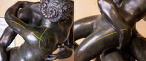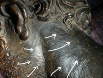 Traces of the mold-making process such as scratches, remains of the molding material, or more rarely drawings or marks may remain on the original statue, indicating that an after-cast has been taken (figs. 128, 129, see I.6§1.4.2).