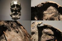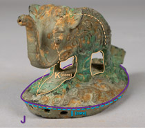 The reusable mold used to form the wax inter-model may leave distinctive traces on the outer surface of the bronze. Gelatin molds, rubber molds, and plaster piece molds may all produce seam lines on the wax. Usually these features are removed during the refinishing of the wax inter-model, but not always fully. These may, however, not be considered singular to these processes (see I.1§1.2 above). See also I.1§1.1 above for the evidence common to all lost-wax processes. Securely identified examples of the indirect wax-slab process are rare. The way in which the metal curves in on the back of a relief could be the result of the bending of existing wax slabs around the core (figs. 81, 82).