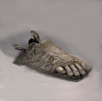 It is virtually impossible to determine how the metal was fed through the mold (for instance in the case of a lost-wax cast), despite close study of a finished cast. In most finished bronzes, sprues tend to be cut off and the surface chased, making reconstruction of the sprueing disposition very difficult. On rare occasions the entire network, including the casting cup, is preserved. This can range from designing the sculpture itself in such a way as to take into account the distribution of the metal (fig. 71) to preserving the full network of sprues for demonstration purposes (fig. 46). In most cases only occasional traces survive. These can take various forms: