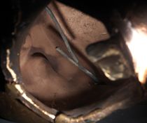 A borescope (or endoscope) can afford visual access to internal recesses of hollow casts that are otherwise impossible to reach so as to reveal information about core pins, armature, and the forming of the core that mirrors that of the inner surface of the bronze (see II.2§2.2).