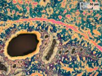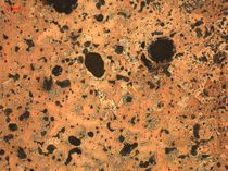 As when studying the crystalline structure of a rock, a cross section with specific preparation is necessary to investigate the microstructure of a metal sample through metallography (see I.2§3.3 below; also II.5§6). This structure can give clues as to whether the sculpture has been reworked or not, and potentially whether there are . Two very different metallurgical states—and consequently microstructures—are found in cast bronze sculpture. The first corresponds to the as-cast state and exhibits a dendritic microstructure (figs. 142, 143, 144, 145). The second reflects disturbance of the dendritic structure by cold working, and sometimes by subsequent heating (metallurgists use the term “annealing”), in the areas closest to the worked surface. This may result in a recrystallized granular microstructure (figs. 144, 146, 147, 148). The microstructure affects physical and chemical properties dramatically, particularly corrosion resistance and mechanical properties. For this reason, for instance, hammered-in repair may stand out from the surrounding cast bronze setting because their crystallized microstructure oxidizes or otherwise patinates in a different way (fig. 125). The hardness of an as-cast bronze may be greatly increased by distorting the dendritic as-cast microstructure through hammering (see I.6§3.3).