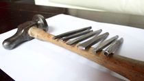 The tools used to finish a cast surface can be divided into two broad groups: those that remove metal and those that compress metal. The former category includes files, chisels, scribes, gravers, burins, scorpers, scrapers, and abrasives, while the latter encompasses hammers, planishers, , grounders, and burnishers.9 The number of variants within each group and tool type is potentially vast, since chasers often make the precise tools they need for the job at hand (figs. 243, 244, 245).