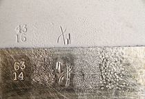 Marks on the surface might equally relate to deliberate actions associated with technical examination. For instance, to identify an alloy or the generic type of the metal (for instance unalloyed copper or ), a might have been scratched to reveal the metal below, or a sample drilled (fig. 156) or incised with a graver or scalpel. These marks may be found on internal and external surfaces.