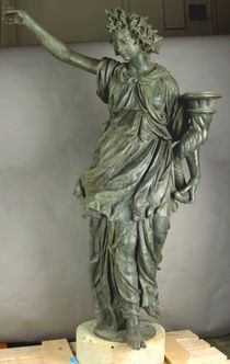The amount of work required to bring a casting to its finished state depends upon the quality of its . While it is possible that no significant chasing will be necessary,7 more usually the founder, chaser, or artist will finish all of the broadly modeled surfaces and introduce or reinforce details, textures, and patterns (figs. 105, 238, 239, 240, 241, 242, video 10 Open viewer).8 All evidence of such working would be restricted to the external surface.