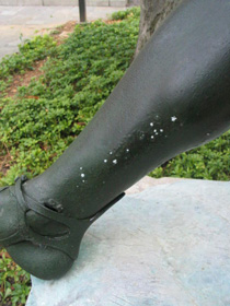 Regular maintenance and application of protective coatings are important to preserve the bronze and the patina, a practice that has been in use since at least ancient Roman times.28 In spite of such maintenance, bronze surfaces may still change in appearance and color over time.
