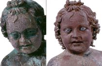 Careful comparison of all existing inlays and overlays and tooling traces throughout a sculpture can often help distinguish original versus replacement parts. Substitution of materials or restorations can generally be identified by inconsistencies in material composition (and the presence of anachronisms) or method of attachment.16 Even if lost, the former presence of an inlay may be inferred from jarring voids or recesses, or by comparison to related objects on which the inlay is preserved. Analytical methods may also be necessary to identify and compare materials.