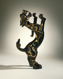 Overlays comprise materials such as stone, enamel, or metal laid over the metal surface (see I.9§1.2 below). They are less frequent on bronzes than inlays. Good examples of overlays may be found in a variety of cultures (figs. 47, 223).