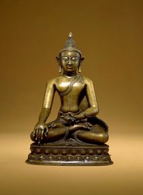 Inlays and overlays of mineral-based material include stones and semiprecious stones (figs. 297, 351, 352, 353), gems (fig. 354), glass (figs. 309, 351, 355), and mixed material such as frit (glass and ceramic mix) and pigmented glaze (fig. 356). A variety of stones can be employed to add detail to a sculpture, as on reliquaries and jewelry. They may be roughly shaped or cut into fine lamina for inlay, and may be opaque or translucent. Generally found on jewelry, they allow light reflection from a patterned underlayer of gold (fig. 340 G). Stones may also have symbolic or religious significance. Stone and/or pigment can be combined with metal to create multicolored effects, as seen notably on ancient Egyptian and medieval Indian statuary, and also on Chinese ware (fig. 357).