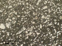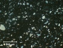 Sampling and sample preparation are of great importance for preserving all the material evidence of the fabrication process. Whereas chemical analysis can be performed on powdery material, it is preferable to work with a coherent block of core, as it enables full characterization of the petrographic structure (fig. 431), chemical heterogeneity, and porosity. Petrographic characterization is ideally performed on a substantial thin section, made from a block of one cubic centimeter or larger if possible. Smaller samples of even a few square millimeters may still provide valuable information. The location of each sample should be clearly documented for future reference.