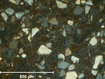Petrographic analysis is ideally done on prepared thin-section samples of intact casting core fragments.21 It is intended to provide information on the different proportions of materials present (clay, plaster, sand, organic temper), the size and shape (morphology) of the particles, the amount and distribution of porosity, and the distribution of different mineral phases). These features are essential for precise characterization of the core.