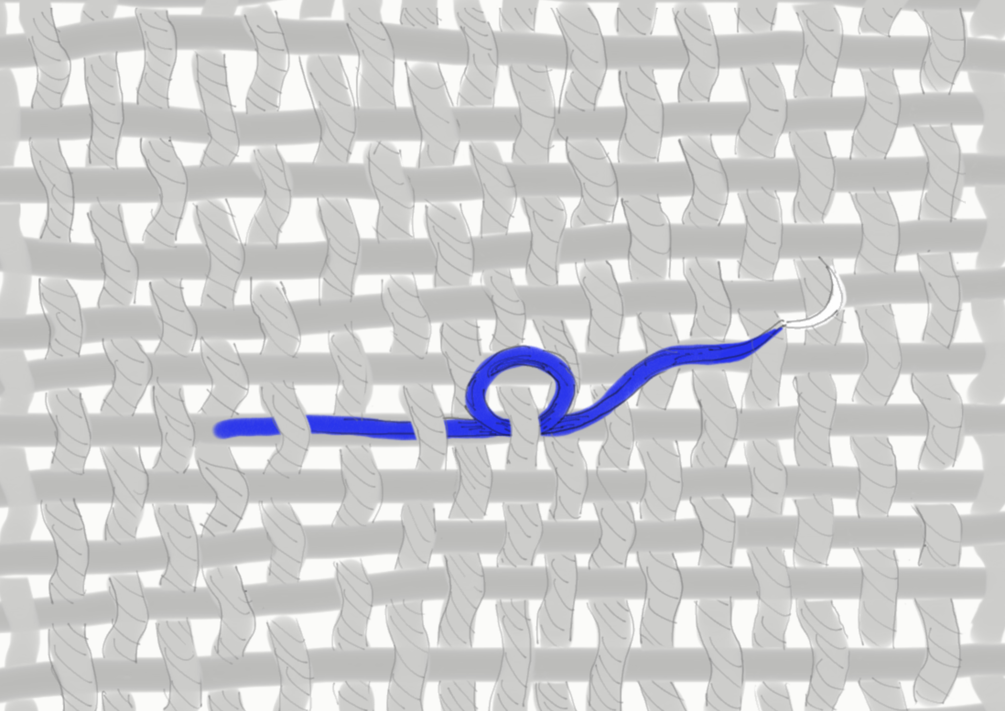 Gore-Tex sutures, commonly used in dental surgery, are a microporous, flexible polytetrafluoroethylene monofilament with a stainless-steel needle fused to either end of the monofilament. They are soft and easy to manipulate. They can also be dyed to match the fabric support of a painting, and thus be a discreet addition to a conservation treatment. They come in a variety of monofilament thicknesses, needle gauges, and needle types. Generally, the preferred Gore-Tex suture for most treatments where suture reinforcements are needed is the thinnest gauge: monofilament CV-8 with a needle gauge of TTc-7 and a tapered needle shape.