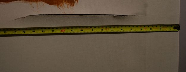 The size or length of the tear impacts the overall structural integrity of the canvas support. Horizontal and vertical tears are both affected by stress inherent to the overall canvas, but horizontal tears are vulnerable to the added effects of gravity and the weight of the canvas pulling on the mend. This stress is increased when the tension of the canvas is loose and there is a thick, heavy paint layer. Finally, the location of the tear and potential stress from increased vibrations may compound the stress created by all the other factors.