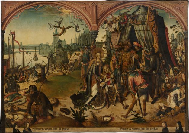 The paintings at the V&A are quite varied. They number around two thousand works and span two thousand years—from first-century Roman frescoes to contemporary paintings from India and Southeast Asia. There are some remarkable German medieval paintings, the fourteenth-century Apocalypse Triptych from Hamburg by Master Bertram (d. 1415),1 and a fifteenth-century oil on canvas from Cologne by the Master of the St. Ursula Legend (fig. 33.1). Italian Renaissance works include panels by Carlo Crivelli (ca. 1430–1495) and Sandro Botticelli (1444/45–1510). There are seventeenth- and eighteenth-century Netherlandish paintings and significant collections of nineteenth-century Continental and British paintings, including ninety-two oil sketches by John Constable (1776–1837). Among the twentieth-century additions are a large collection of theatrical cloths, including backdrops used by the Ballets Russes.