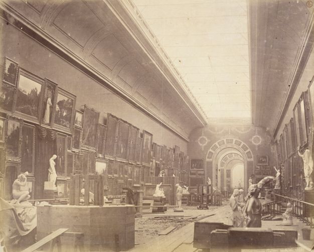 As mentioned earlier, paintings from the collection were regularly sent to art schools around the country for students to copy. The destinations were noted on labels on the reverse, possibly stamped on arrival at the art school. One such label on the reverse of The Torrent records that it went to Northampton and Salford in 1913, and Truro in 1922. An adjacent label contains an injunction not to hang the painting in direct sunlight. The galleries at South Kensington were carefully designed to ensure that the viewer was not disturbed by reflections from the central roof light (skylight), described as “glitter,” including those high up on the walls in a dense double or triple hang (fig. 33.3) (Committee of Council on Education. 1858. Fifth Report of the Science and Art Department of the Committee of Council on Education. London: Her Majesty’s Stationery Office.).