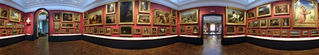 Roughly three-quarters of the paintings in the collection are on canvas. Paintings are displayed throughout the museum, notably in the Medieval and Renaissance Galleries, Europe 1600–1815, and the British Galleries 1500–1900. The Paintings Galleries were reopened in 2003 in a part of the museum that was built to house the first gift by John Sheepshanks (1787–1863) in 1857.