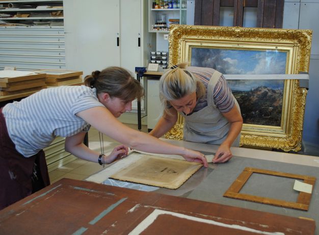 Inevitably, the public program sets conservation priorities to a large extent, but we do aim to devote time to the core collection each year. The evidence from the recent survey of the reserve collection highlights the importance of backings in the preservation of canvas paintings. There was a strong correlation between the paintings with evidence of weakened canvas—shown by pronounced cupping, stretcher bar marks, and flaking paint—and those that had no backing. In contrast, many of the canvases that have had backings since they were acquired in the nineteenth century (in a few cases the same backings) appear sound and often have no obvious age cracks.