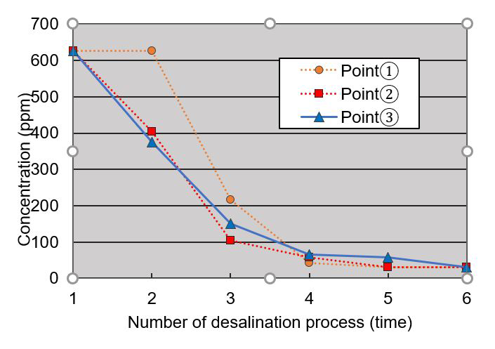 The salinity concentration levels of the chloride test paper were measured each time (fig. 63.6, table 63.1).