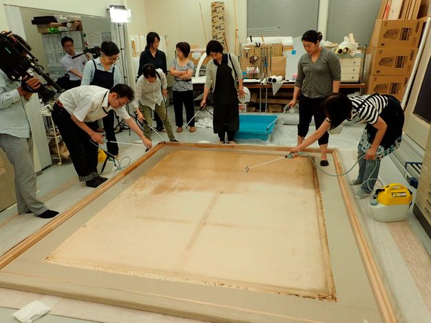 This research was carried out with support from the National Task Force for the Japanese Cultural Heritage Disaster Risk Mitigation Network’s Cutting Edge Scientific Research into Disaster Risk Mitigation, a subsidy provided by the Agency for Cultural Affairs. Technological advice regarding the blotting process was provided by Norie Nishihara and Otoyo Yonekura. We would also like to thank the Smithsonian Institution’s Marion Mecklenberg for providing invaluable advice about canvas shrinkage.