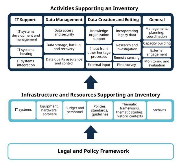 The following sections describe various types of organizational infrastructure that commonly support heritage inventory programs.1 This infrastructure should not be confused with another type common to heritage inventories: information repositories, which include archives holding physical collections of information records.