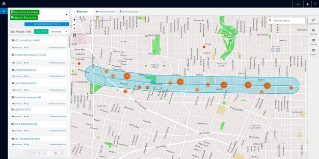 An administrator of an independent Arches implementation can create predefined saved searches deemed to be of interest to users. For example, the City of Los Angeles’s deployment of Arches, HistoricPlacesLA, features an Entertainment Industry saved search on its homepage. All of these discovery tools can be used together to create powerful custom search queries.