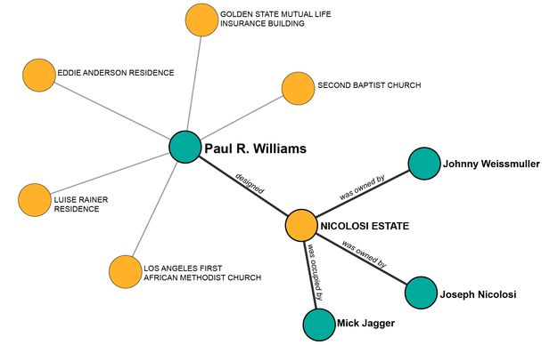 End users can also visually explore the relationships among resources in Arches and find new connections via the Related Resources network visualization. This capability allows relationships to be established among people, places, and things, including historical events and activities (fig. 4.4).