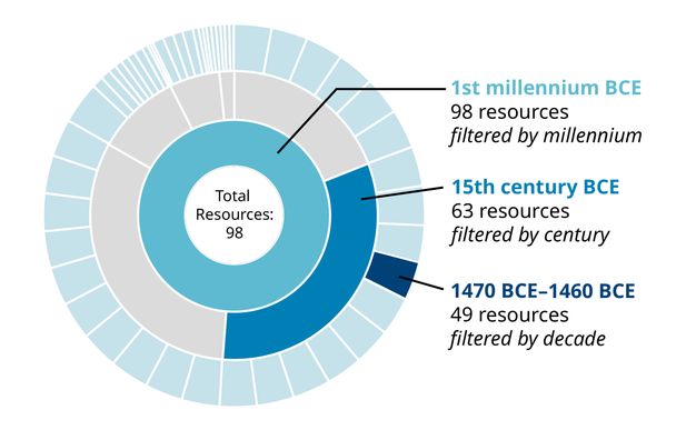Another visually oriented tool is the Time Wheel, which represents all time data in any particular implementation in a circular histogram. This feature allows users to filter and search the distribution of temporal attributes of all resources in their Arches implementation (fig. 4.5).