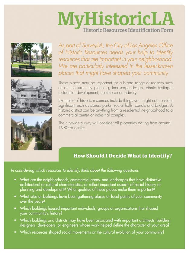 - MyHistoricLA Historic Resource Identification Forms