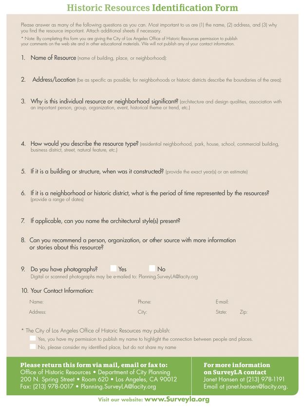 - MyHistoricLA Historic Resources Identification Form