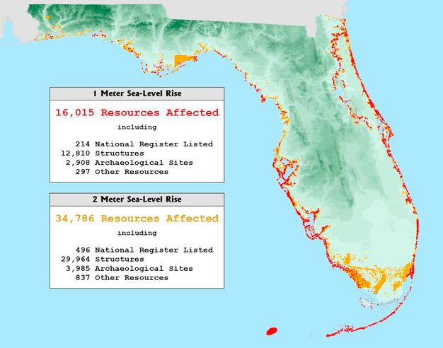 Heritage in coastal areas is under increasing threat from global sea level rise, as well as severe coastal storms and erosion, induced by global climate change. As with other types of natural disasters, identifying heritage places through inventories and related surveys is a crucial first step to understanding which heritage is at risk, and that knowledge underpins determining appropriate responses. As the U.S. state of Florida’s guidance for climate change vulnerability assessments and adaptation planning notes, “a large part of setting the planning context will include identifying and inventorying existing historic and cultural resources. . . . If no baseline inventory currently exists, the involvement of historic preservation agencies and organizations is important in the creation of a new historic resource inventory” (Florida Department of Economic Opportunity. 2015. Adaptation Planning for Historic Properties. Tallahassee: Florida Department of Economic Opportunity. https://floridadep.gov/sites/default/files/CRI_Adaptation_Historic_Properties_0.pdf). If a heritage inventory for a coastal area is incomplete, areas that have not been investigated and that are most vulnerable to sea level rise–related impacts may be prioritized to be surveyed. Inventories in some places include submerged heritage resources; inventories of such resources may become increasingly necessary as sea levels rise.