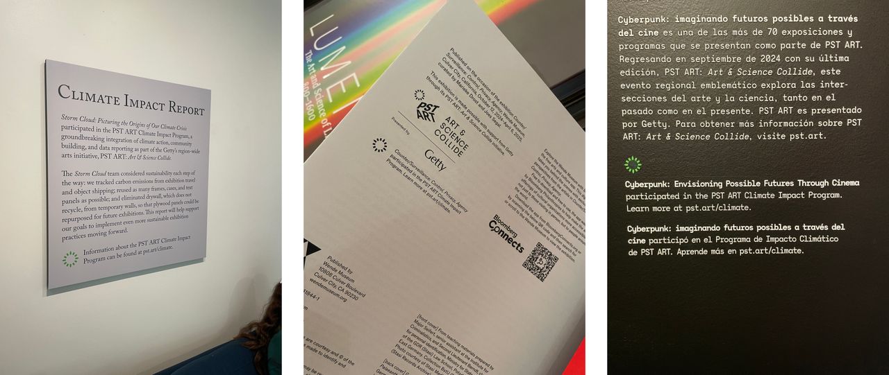 LHL also deployed two other data-collecting efforts during the program: preliminary reports and praxis interviews. Preliminary reports gathered information on institutional policies and climate action history, providing information on each institution’s existing state of engagement in this work. The praxis interviews collected qualitative data on what project teams were most excited about for the CIP, stakeholder ideas for action, and key challenges and priorities. One critical outcome from this “pre-program” data collection was partners’ desire to elevate the visibility of their climate impact work. In response, we created a section of the PST ART website describing the CIP, issued a press release that generated media coverage,1 and designed a green sundial based on the PST ART logo that partners could use in their exhibition materials (online, in-print, and in galleries) to raise awareness.