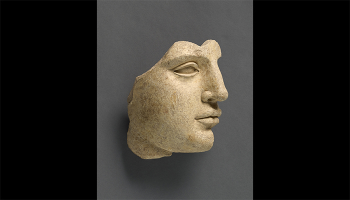 Fragment of a Head, 430–400 B.C., Unknown artist. Terracotta with clay slip